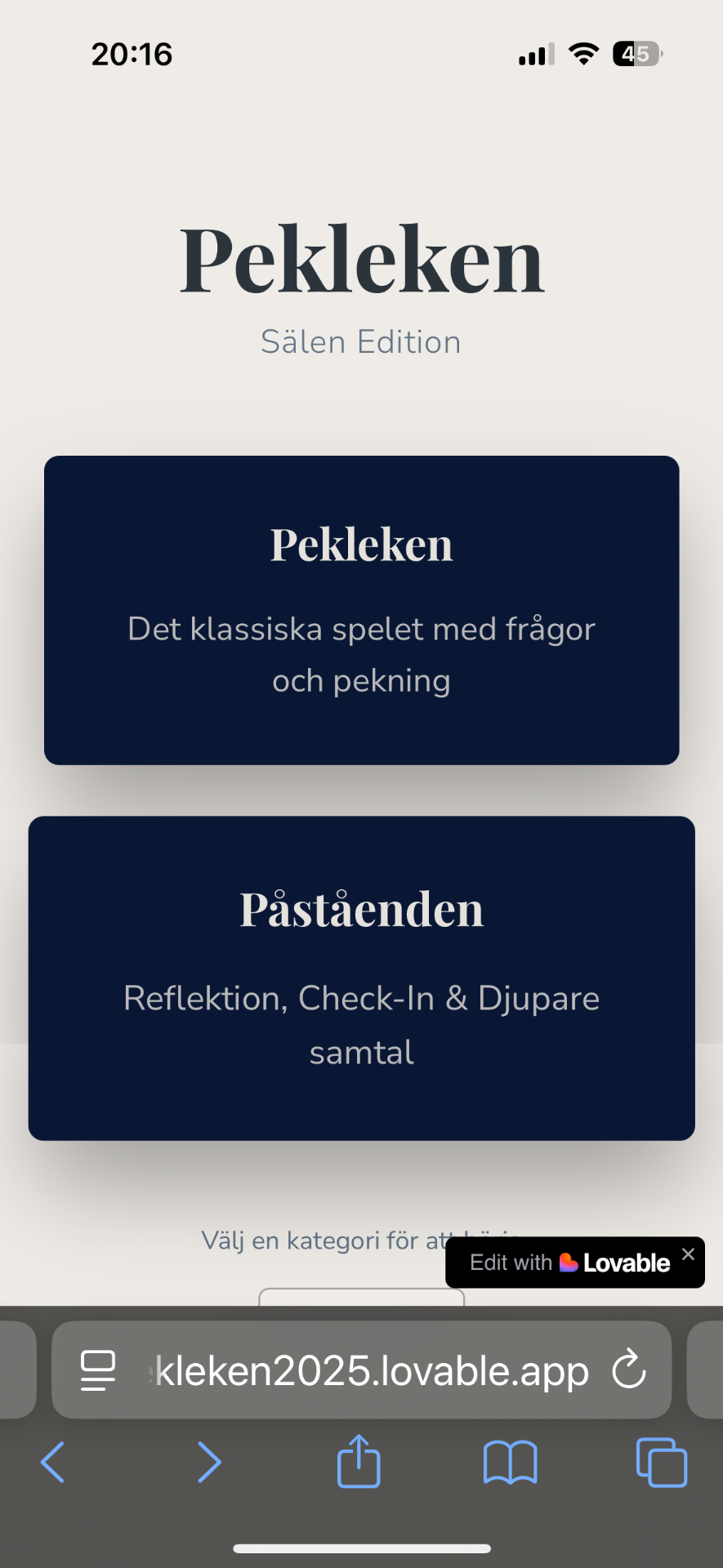 Om appen Pekleken Sälen Edition är en frågespelsapp designad för att skapa djupare samtal och roliga stunder. Appen innehåller hundratals frågor inom olika kategorier.